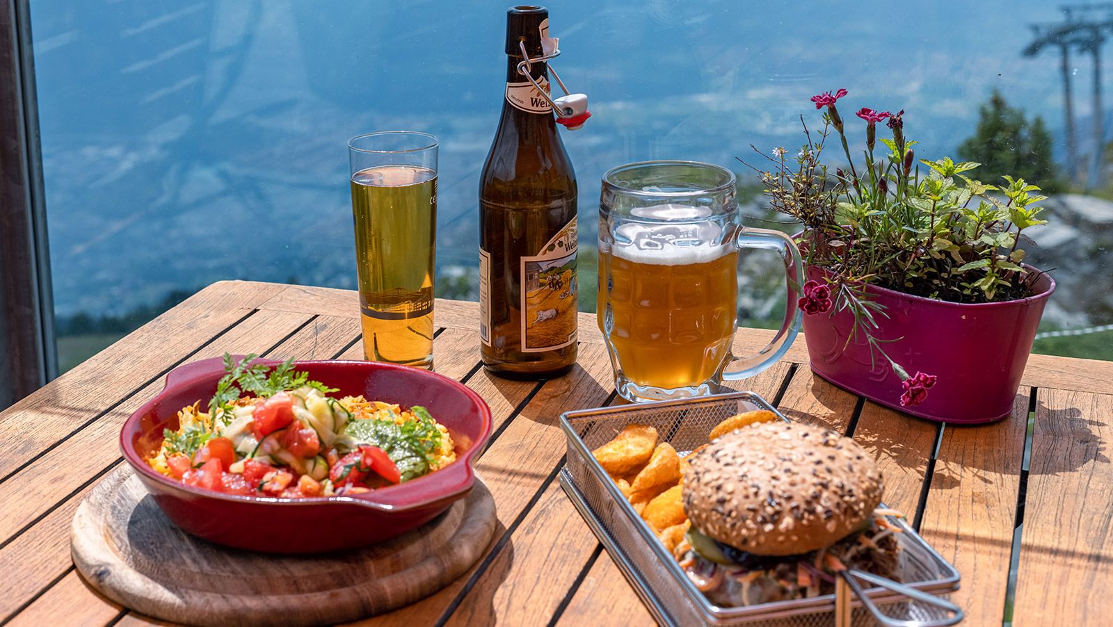 La restauration chaude est servie non-stop de 11.00 à 16.30, ainsi que le soir sur réservation.